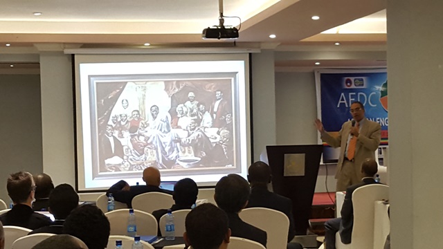 Morgan State University’s Vice President of Reserach, Victor McCrary, challenges the audience to identify the 13 “transboundary navigators” in his presentation, “Transboundary Navigation: A Vision for Pan-African Research and America’s Historically Black Colleges & Universities”